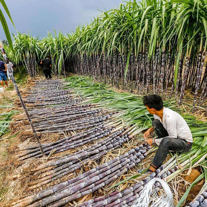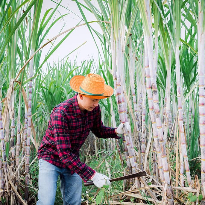 Für teile der Kollektion haben wir ein neuartig entwickeltes Velourleder basierend auf den Fasern der Zuckerrohrpflanze verwendet. Das Zuckerrohr wird zur Zuckergewinnung ausgepresst. Zurück bleiben ein faseriges Gehölz das sonst keine weiter Verwendung hat und als biologischer Abfall auf den Plantagen zurückbleibt. Beim Herstellungsprozess kann der Biologische Anteil bis zu 69% betragen.